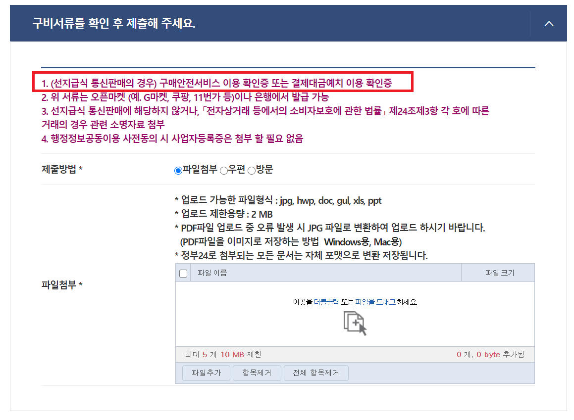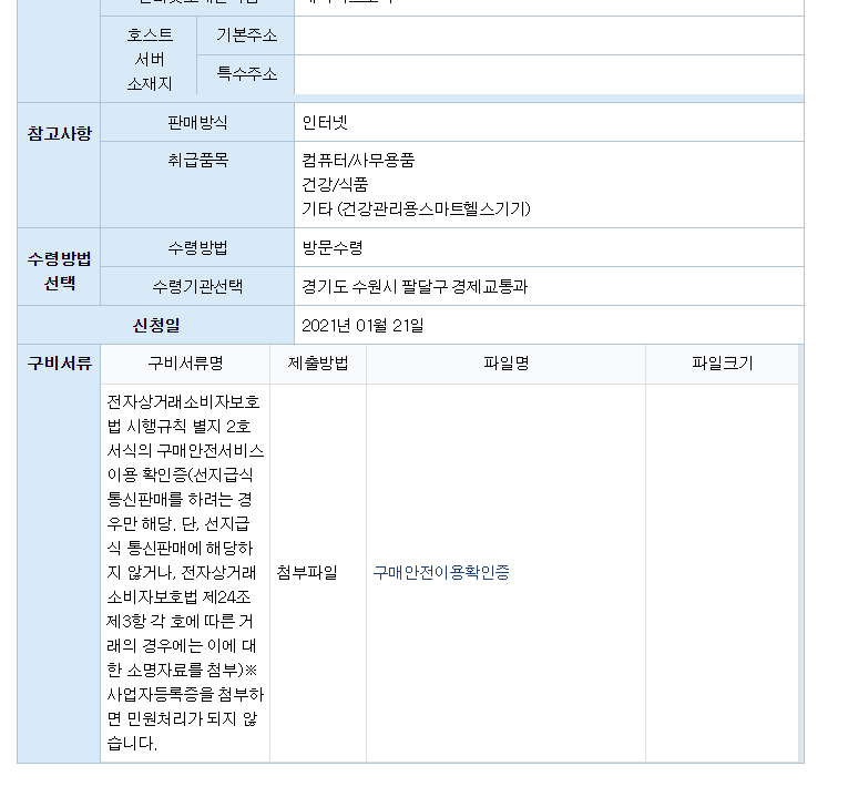 구비서류에 구매안전서비스이용확인증이 있어요