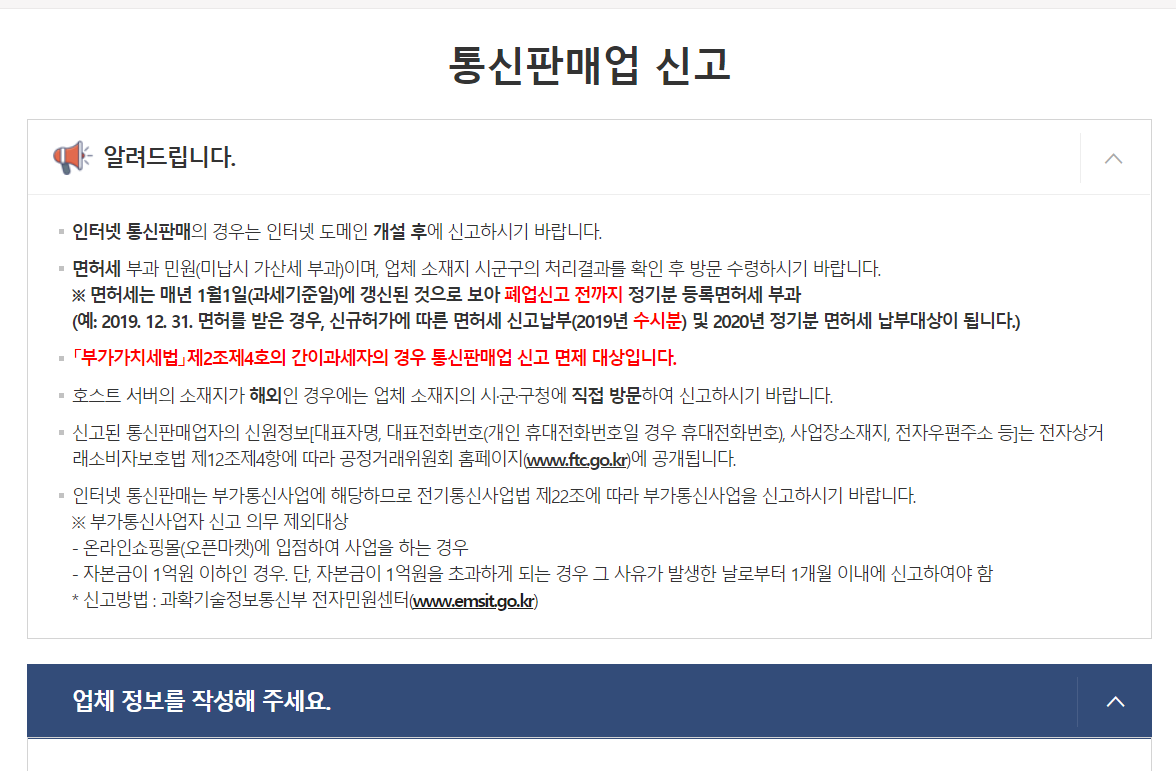 민원24 통신판매업 신고에 들어가면 나오는 안내문이고요