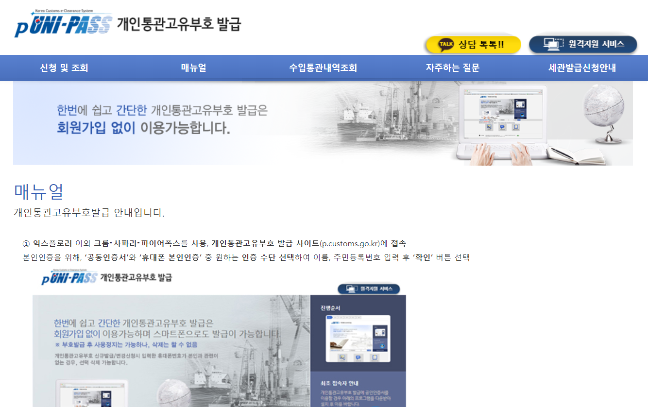 그리고 개인통관부호 발급은 관세청에 등록하는 수입업자 신원 정도로 이해하면 됩니다