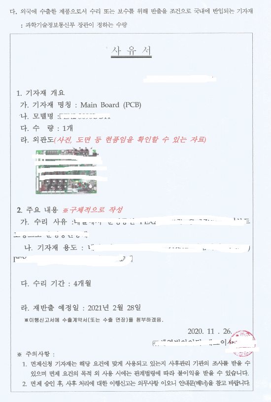 그러면 이 사유서를 관세사에게 주면 적합성인증 안받고 수입할 수 있는 거죠